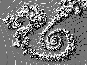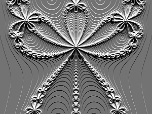 Other types of formulas may be escape-time or of another kind, written to be used with specific coloring formulas. A prime example of this is an embossing formula. Embossing formulas are named for the effect that you might see with embossed paper (like from the seal of a Notary Public); the color doesn’t change, but the shadows and highlights indicate depth. Some sample embossed images are shown in Figure 11.