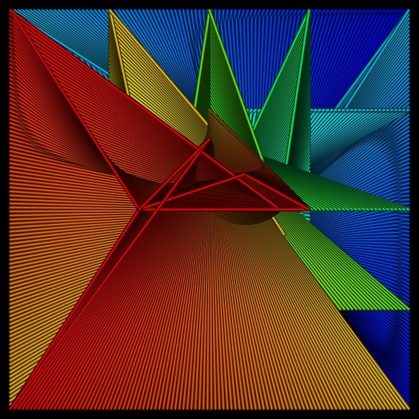 Thousands of triangles comprise this image. In each, the corners are